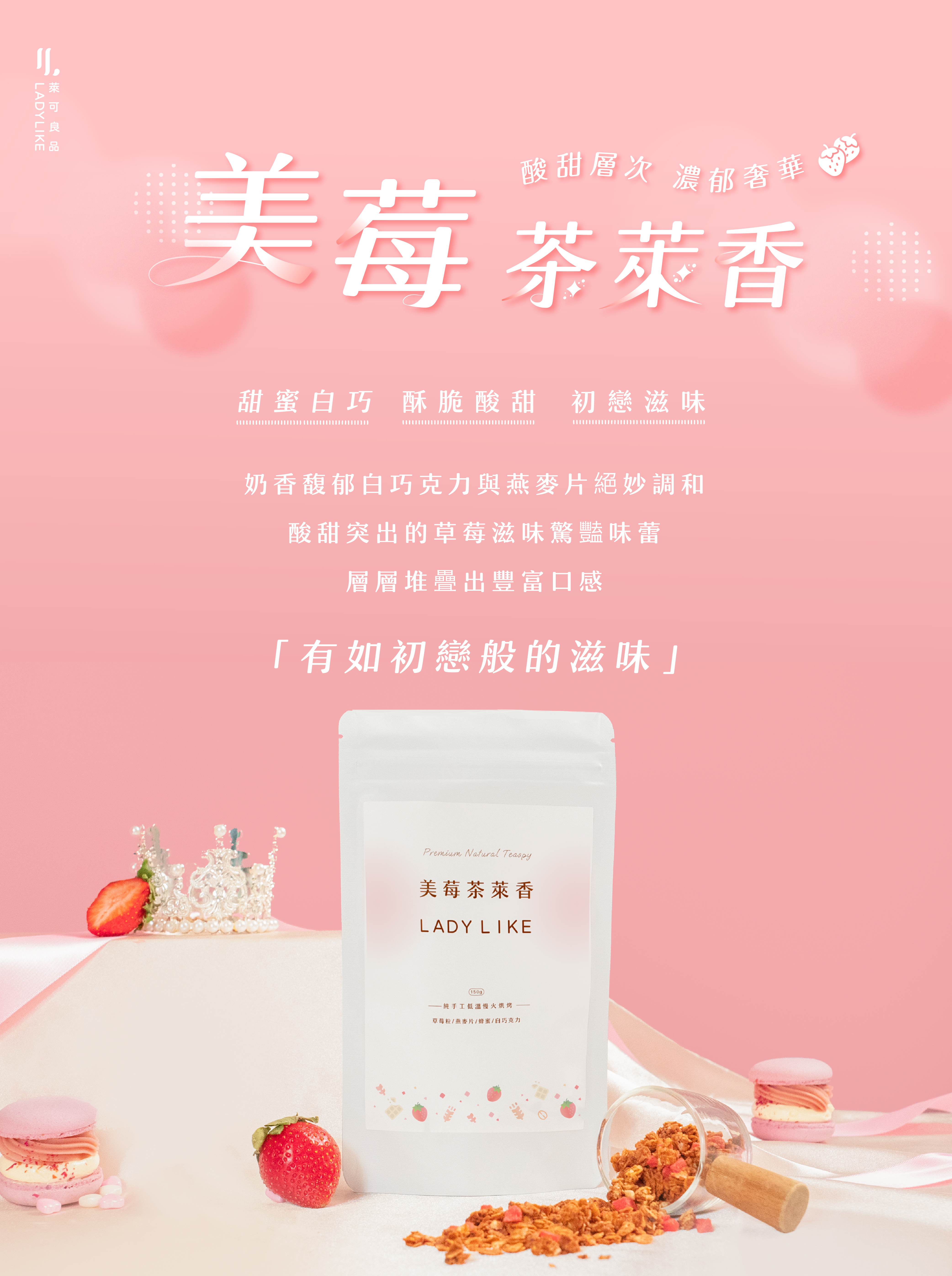奶香馥郁白巧克力與燕麥片絕妙調和|酸甜草莓滋味驚豔味蕾|層層堆疊豐富口感|有如初戀般的滋味