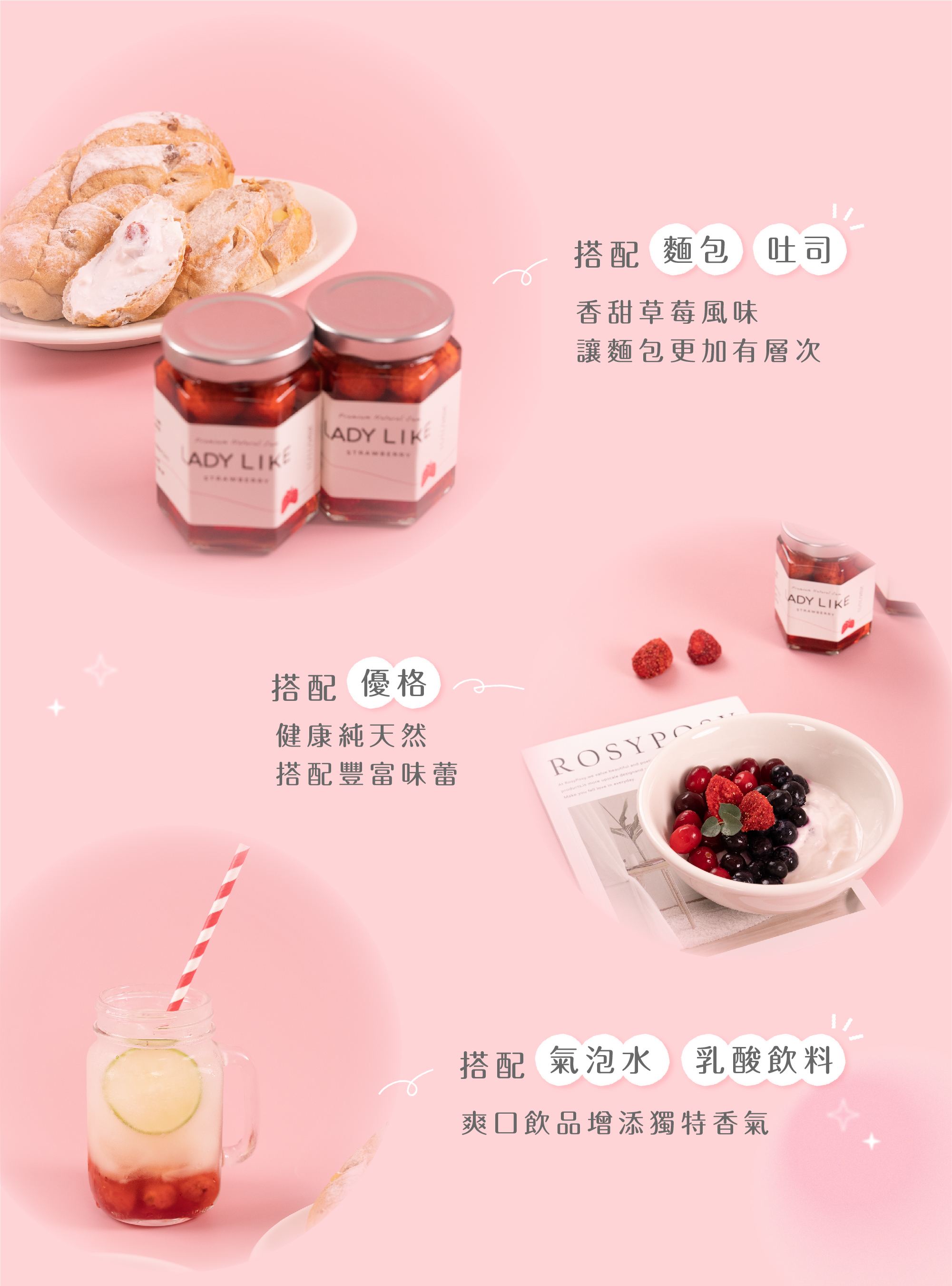 草莓具有水果皇后之稱|承襲經典法式果醬作法|每一口都吃得到完整的果粒|100%純天然製成無人工添加、香精、色素|